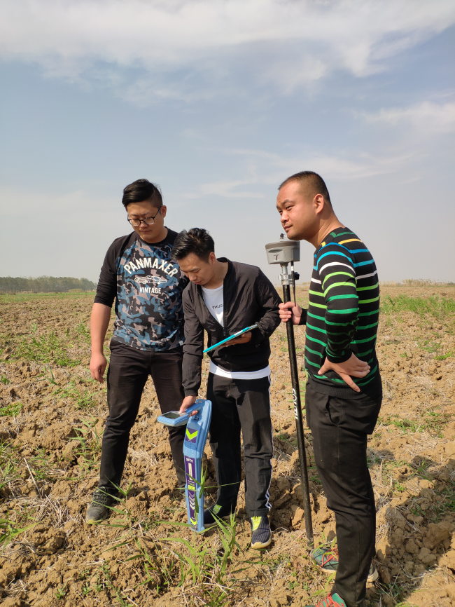 這一天的測量工作一直忙到下午4點才收工,算下來每個人都步行了上十公里。小伙子們的臉上雖然也是一臉灰塵和疲憊,但望著插滿彩旗的田野,大家踏著夕陽而返時,神情和話語里洋溢著掩不住的歡欣。
