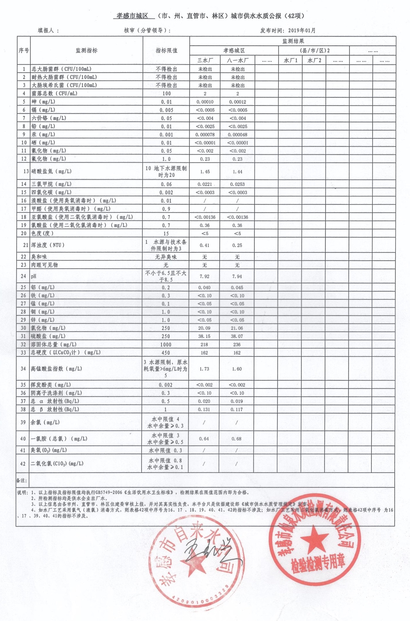 2019年1月水質報告