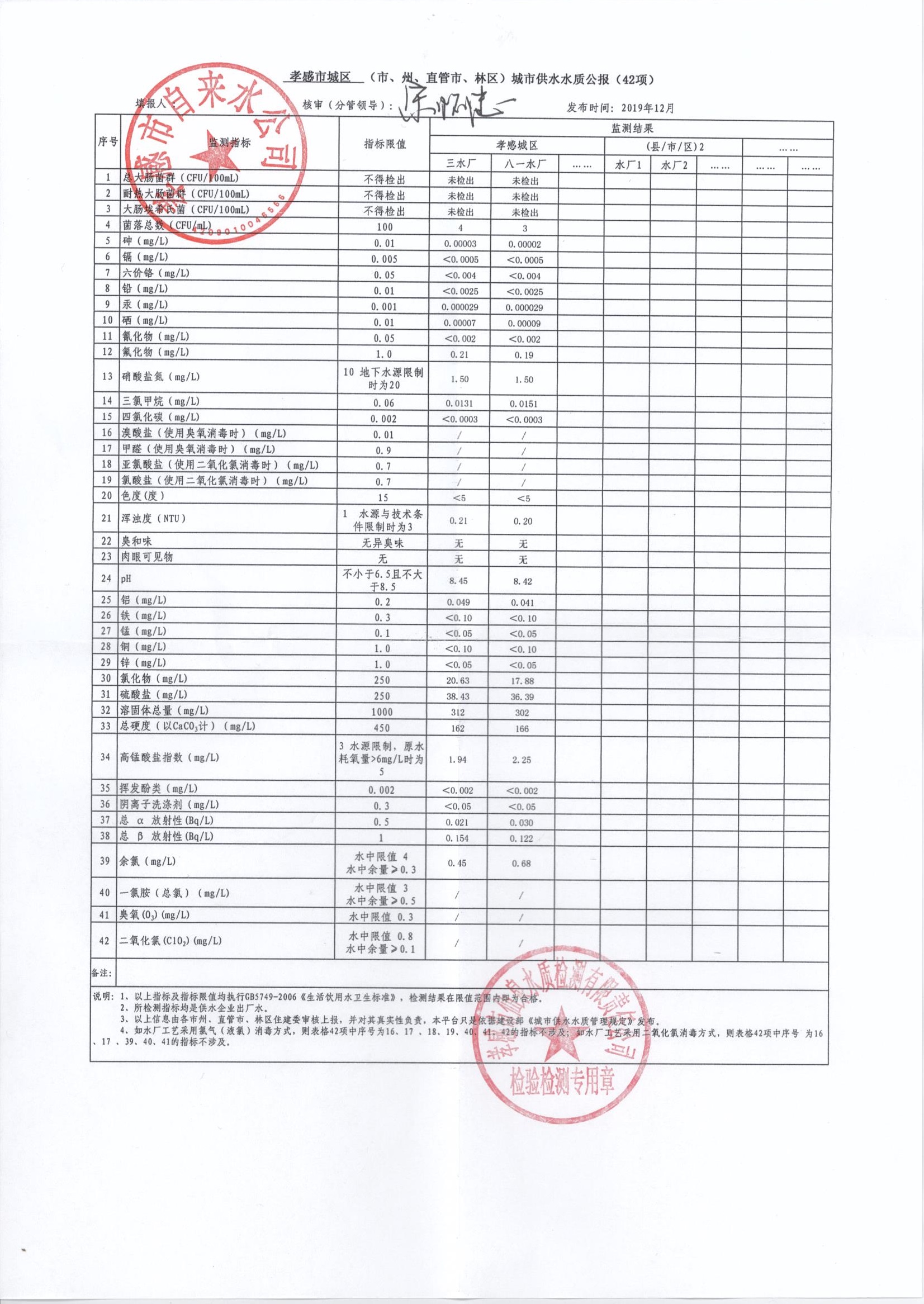 2019年12月水質(zhì)報告
